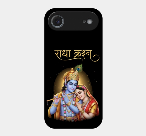 Designed for those who adore divine elegance, this premium phone case features Lord Krishna and Radha in a romantic, divine pose, glowing beautifully against a pure black background. The golden-yellow Hindi calligraphy text “Radha Krishna” adds a spiritual and luxurious touch.